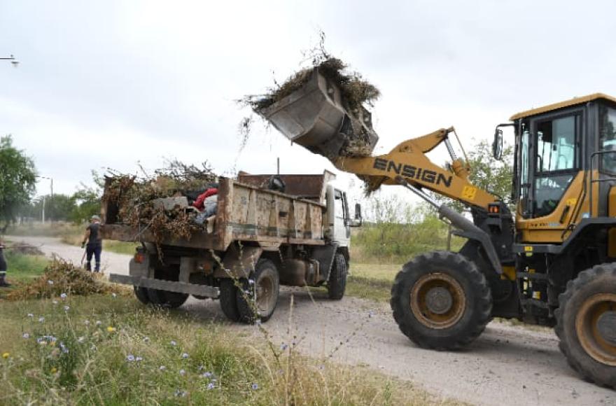 Dada la magnitud de las tareas, se debieron emplear cuatro camiones y pala mecánica que permitieron desarrollar los trabajos del retiro de objetos de desecho, residuos, ramas, entre otros.